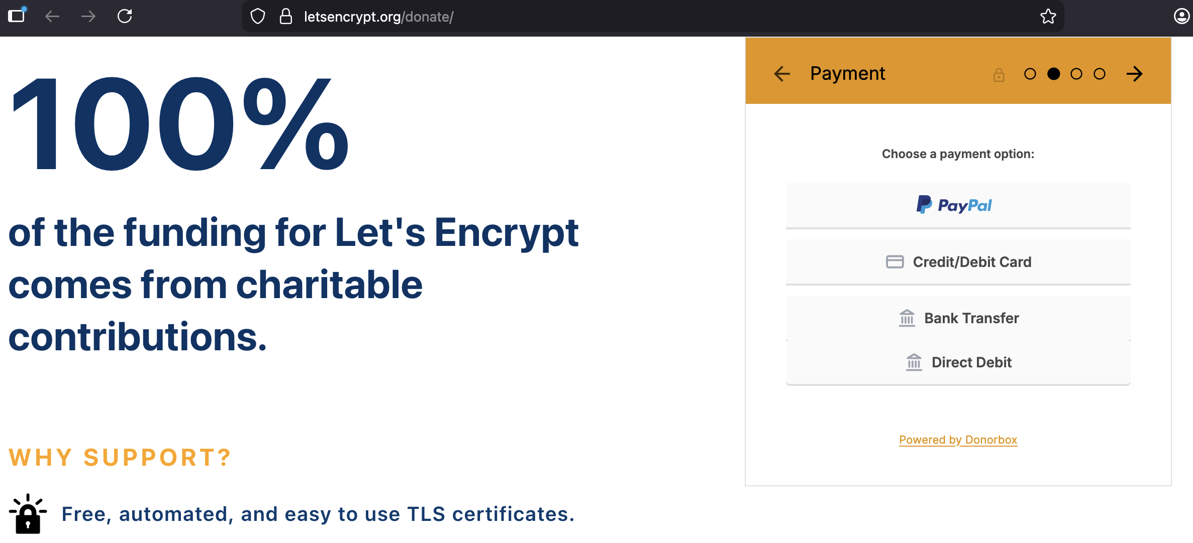 I have donate to Let’s Encrypt USD25. If you love and use Let's Encrypt, please support Let's Encrypt.